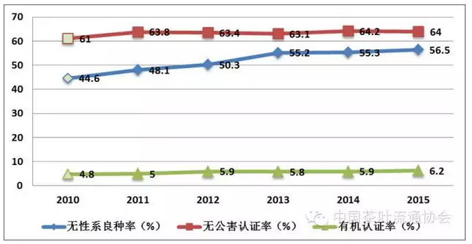 圖3 “十二五”期間我國茶園良種化與認(rèn)證情況