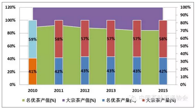 圖5 “十二五”期間我國大宗茶與名優(yōu)茶結(jié)構(gòu)變化